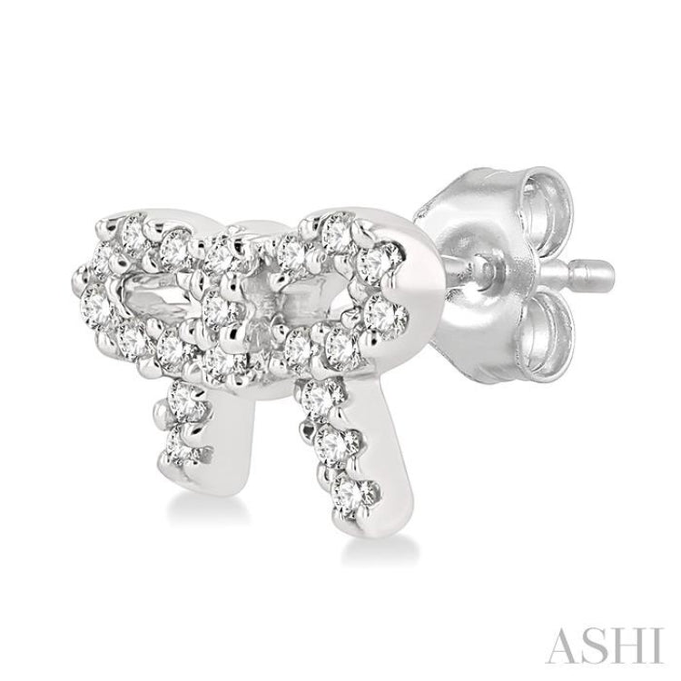 1/8 Ctw Bow Tie Round Cut Diamond Petite Fashion Earring in 10K White Gold
