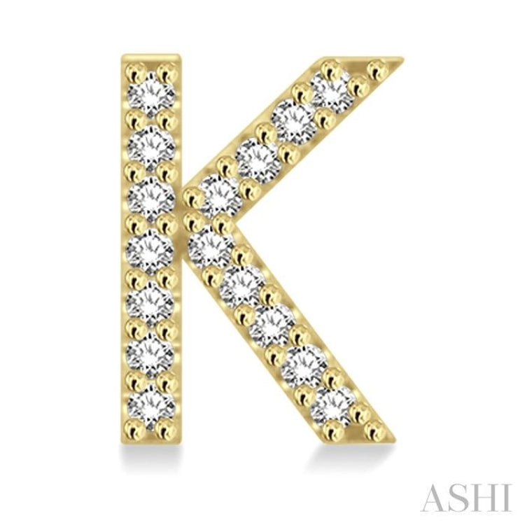 1/10 Ctw Initial 'K' Round Cut Diamond Earrings in 10K Yellow Gold