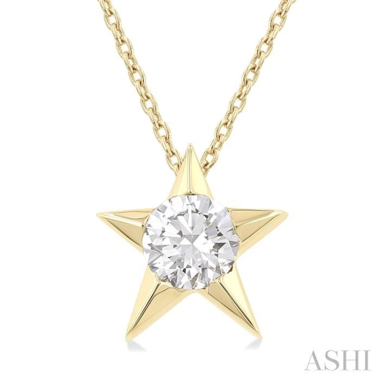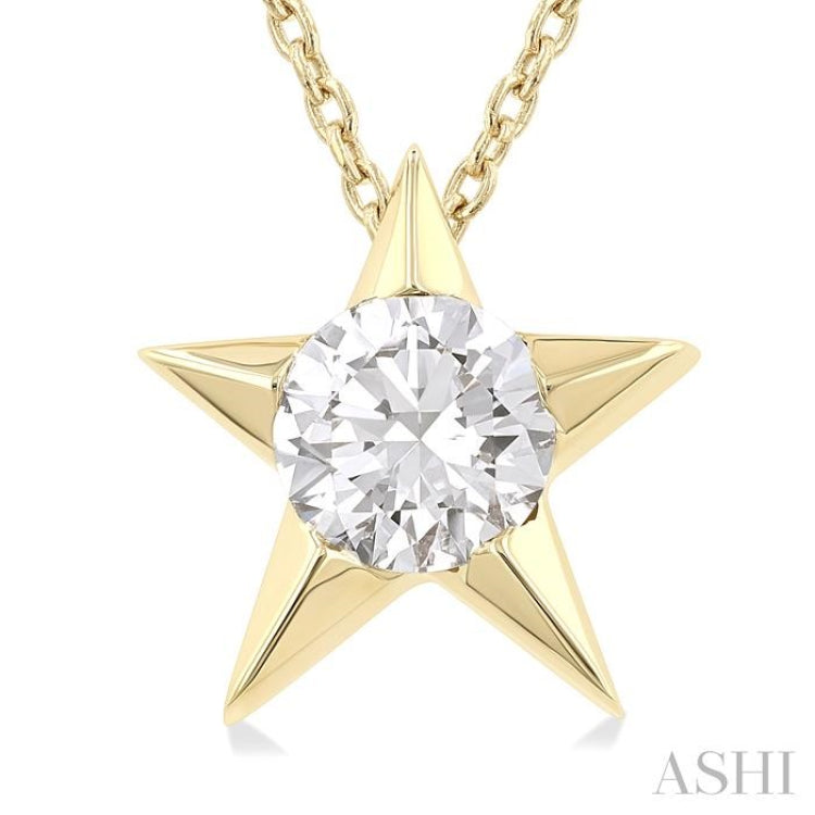 1/2 Ctw Star Round Cut Diamond Fashion Pendant With Chain in 14K Yellow Gold
