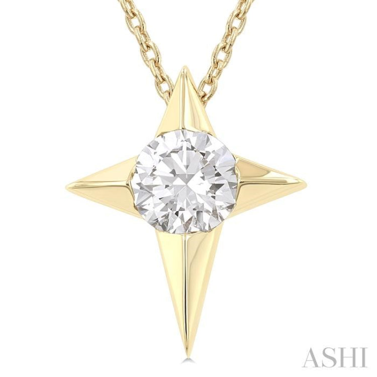 1/2 Ctw Four-Ray Star Round Cut Diamond Fashion Pendant With Chain in 14K Yellow Gold
