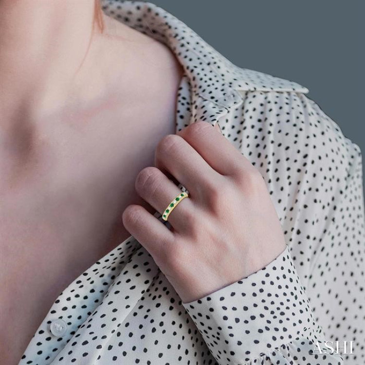 2.3 MM Emerald and 1/4 Ctw Round Cut Diamond Precious Wedding Band in 14K Yellow Gold